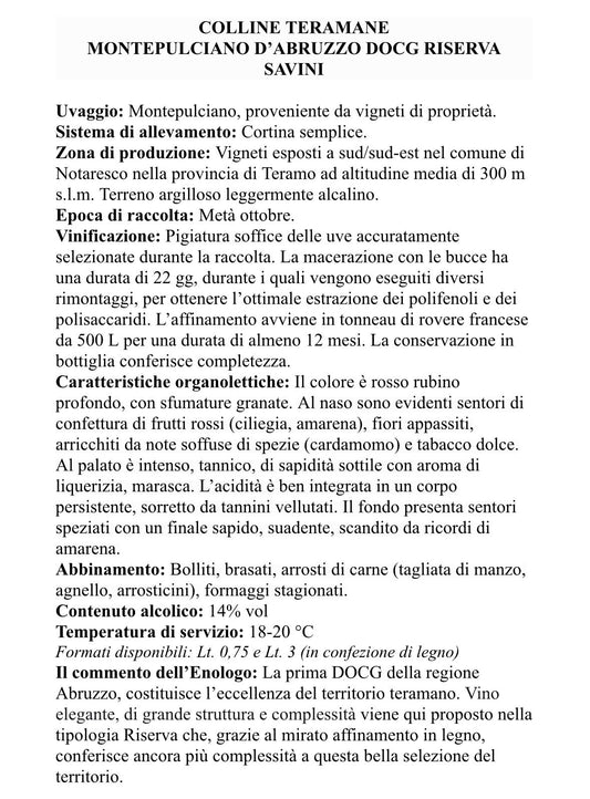 6 x MONTEPULCIANO D'ABRUZZO DOCG CL75 RISERVA SAVINI